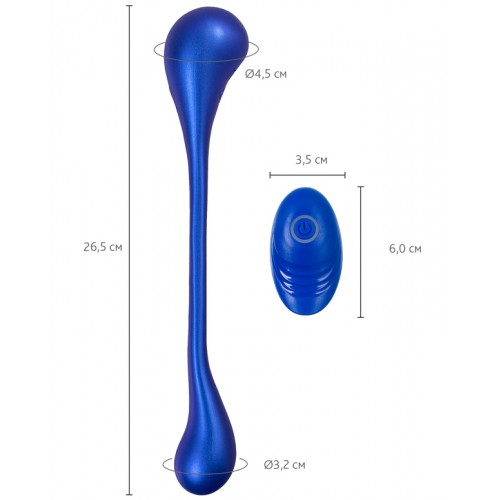 Размер: общая длина 26,5 см, диаметр вибростимуляторов 3,2-4,5 см, длина пульта 6 см, ширина – 3,5 см