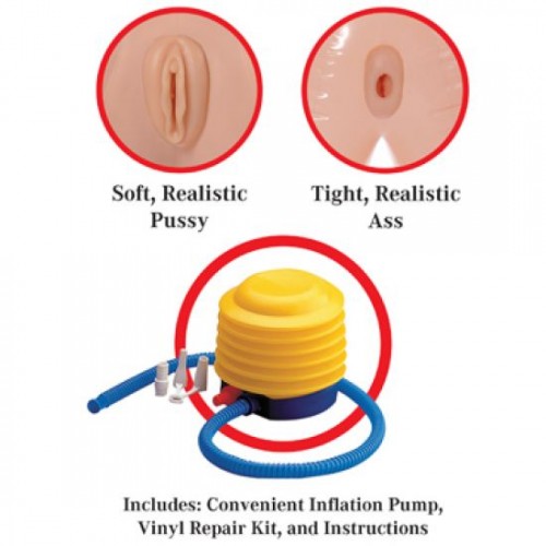 В комплект входит кукла, винил для ремонта, насос и инструкция.