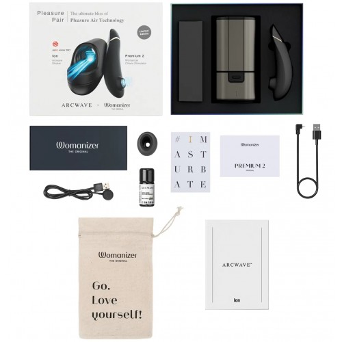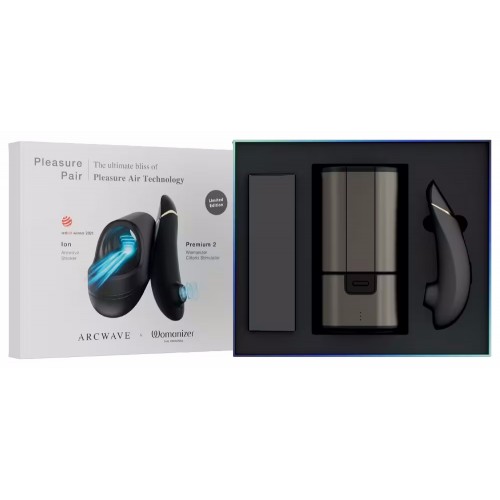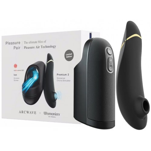 Лимитированный набор Pleasure Pair состоит из Arcwave Ion первого в мире мастурбатора с функцией Pleasure Air и стимулятора клитора Womanizer Premium 2!