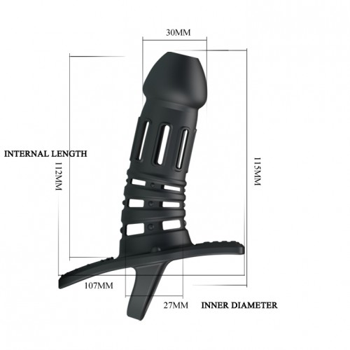 Насадка полностью закрывает мужской член, но оставляет открытой одну самую чувствительную часть - головку!