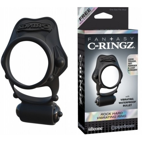 Двойное эрекционное кольцо с вибрацией Fantasy C-Ringz Rock Hard Vibrating Ring хорошо тянется, легко одевается и обеспечивает продолжительный половой акт.