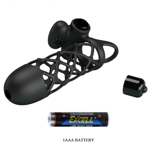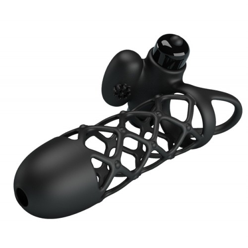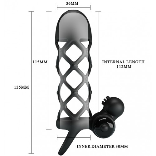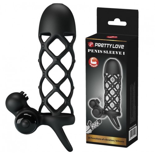 Cиликоновая насадка на пенис Pretty Love Penis Sleeve I с петлёй на мошонку и вибрацией – потрясающая находка для любителей оригинальных секс-игрушек!