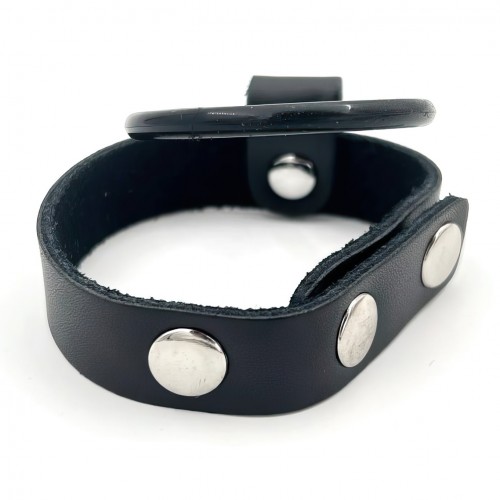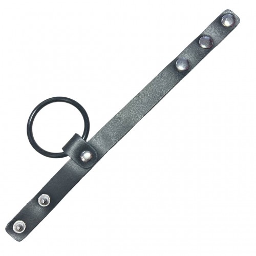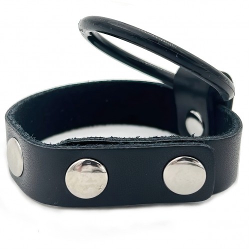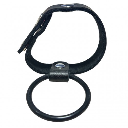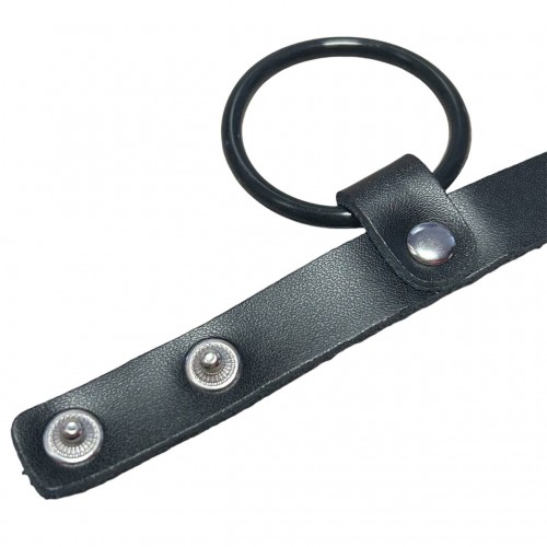 Кожаный ремешок крепится под мошонкой или у основания члена, железное кольцо располагается на самом пенисе.