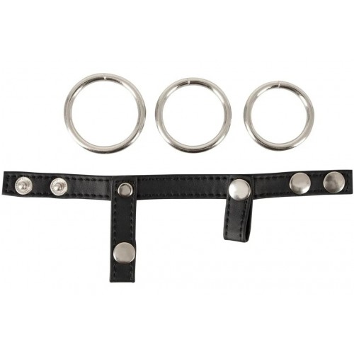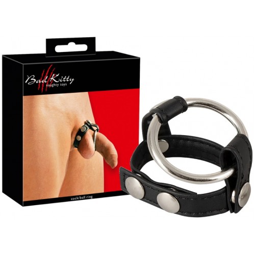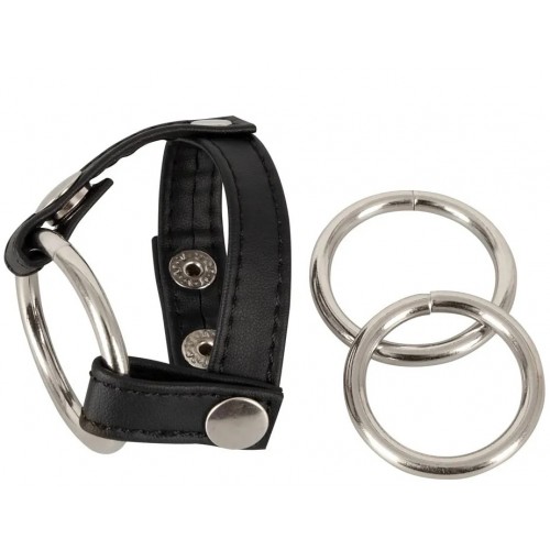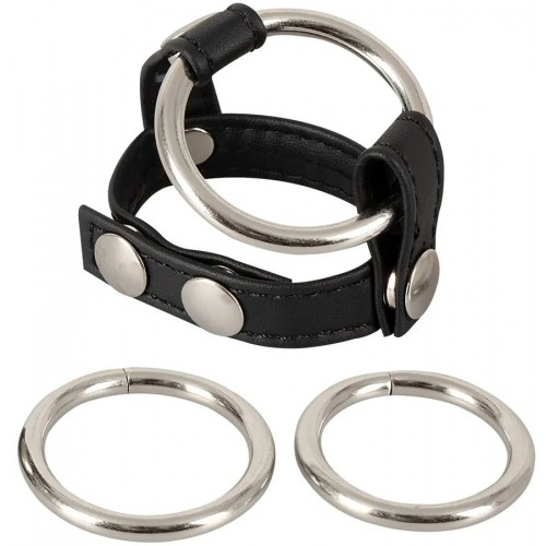 Кожаный хомут на пенис со сменными металлическими кольцами Bad Kitty