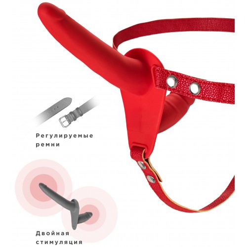 Страпон фиксируется тремя тонкими ремешками из PU-кожи и