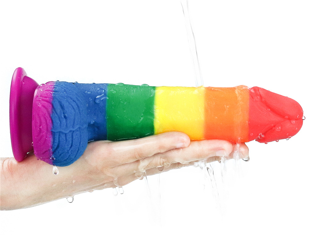 Необыкновенная, яркая, радужная расцветка радует глаз владельца этого фаллоимитатора!