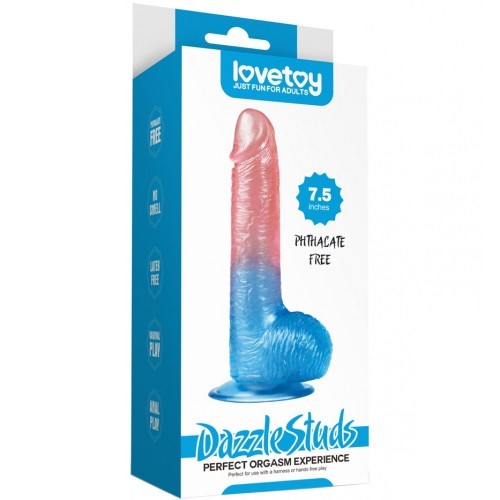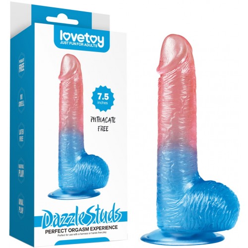 Реалистичный фаллоимитатор с мошонкой и цветным градиентом Lovetoy Dazzle Studs 19 см
