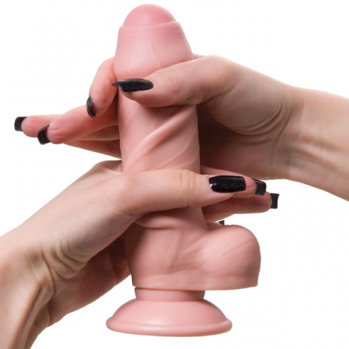 Рельефные вены, скрытая головка и упругие яички делают этого красавчика максимально похожим на натуральный пенис.