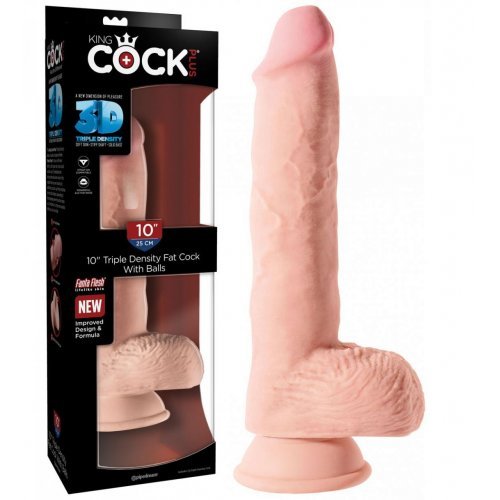 Большой фаллос с мошонкой на присоске King Cock Plus Triple Density 28 см