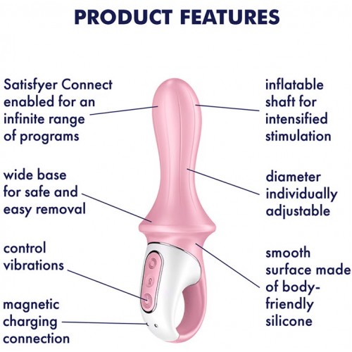 Благодаря своей анатомически верной форме Satisfyer Air Pump Booty идеально подходит для массажа простаты: гладкое и округлое окончание непосредственно касается точки P.