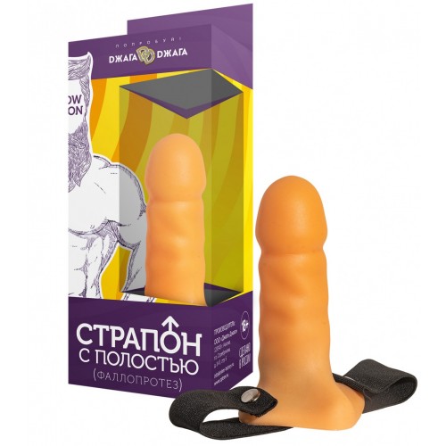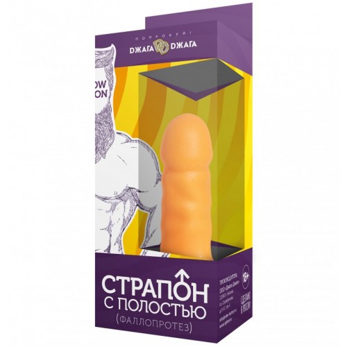 Игрушка представляет собой реалистичный страпон с головкой, мощным рельефом и ярко выраженной головкой.