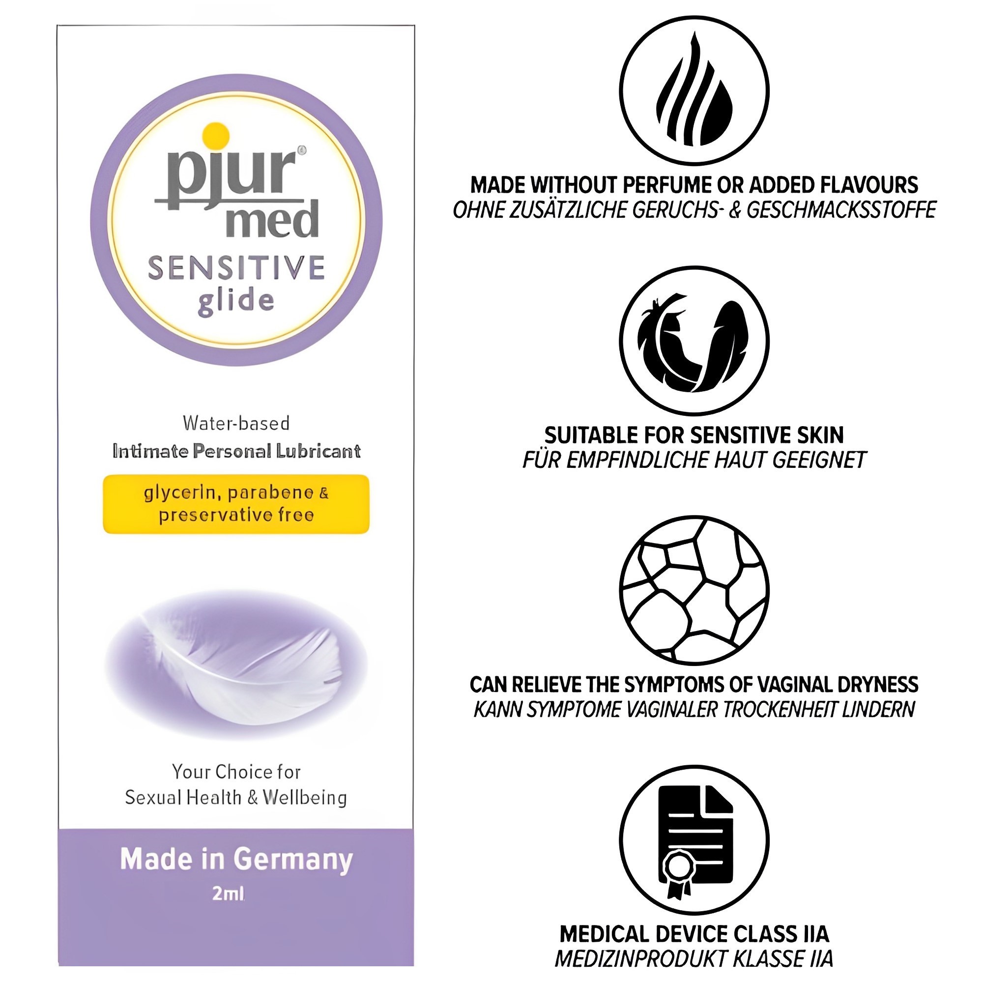 В дополнение к безупречным свойствам скольжения, Pjur Med Sensitive glide великолепно увлажняет, обеспечивая тем самым превосходный уход за кожей - и не только в интимных зонах.