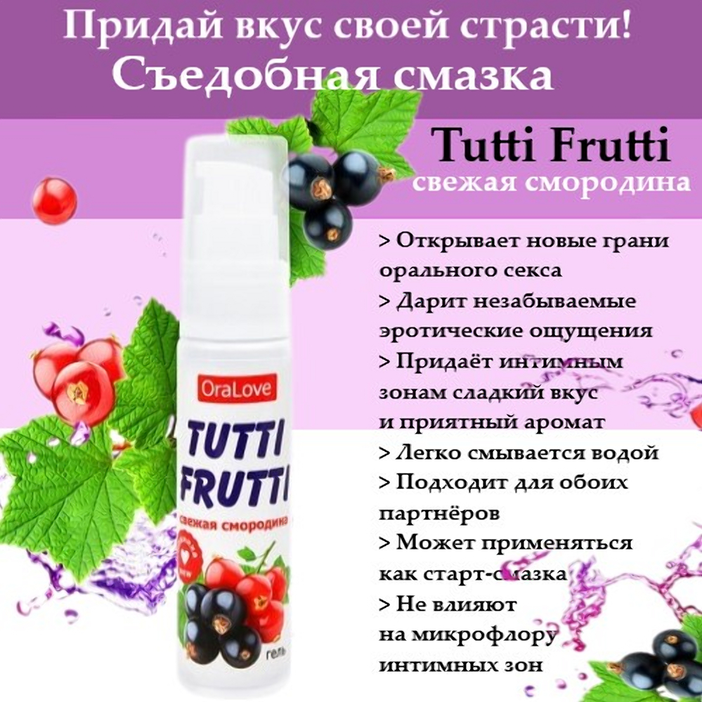 TUTTI-FRUTTI свежая смородина со сладким вкусом и головокружительным ароматом раскрепостит, закружит в водовороте любви и удовольствия, внесёт в сексуальную жизнь новизну и разнообразие!