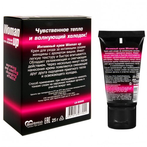 Попробуй стимулирующий крем WOMAN UP с потрясающим ароматом вишни. С этим кремом ты можешь позволить себе пробудить дикую страсть и первобытные желания.