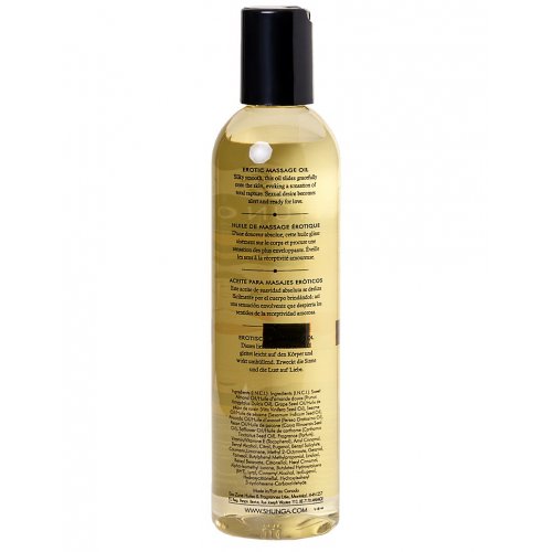 Натуральные компоненты, входящие в состав масла, хорошо подойдут для людей с чувствительной кожей. Сладкий миндаль, витамин Е, иланг-иланг со своими свойствами афродизиака, масла кунжута, авокадо, сафлоры и семян винограда наполнят помещение неповторимым ароматом и пробудят сексуальное желание!