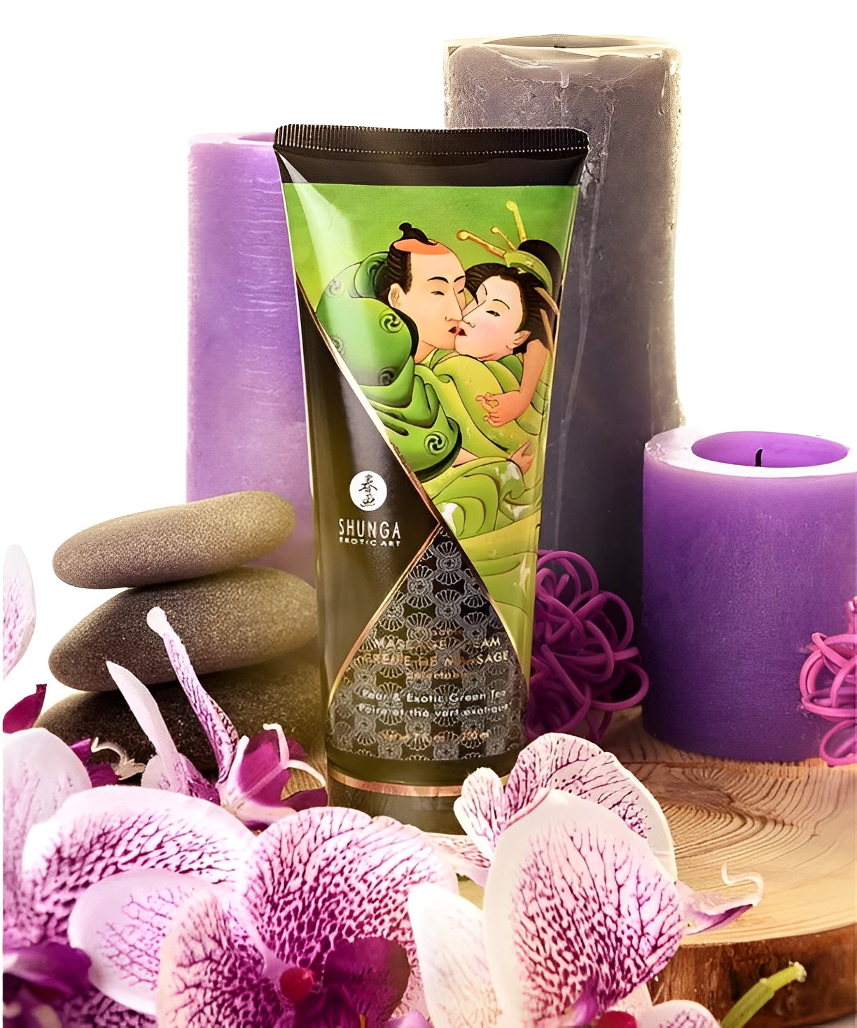 Съедобный крем для эротического массажа Shunga с легким ароматом и вкусом груши и зеленого чая обладает расслабляющим и возбуждающим эффектом, увеличивает чувствительность эрогенных зон.