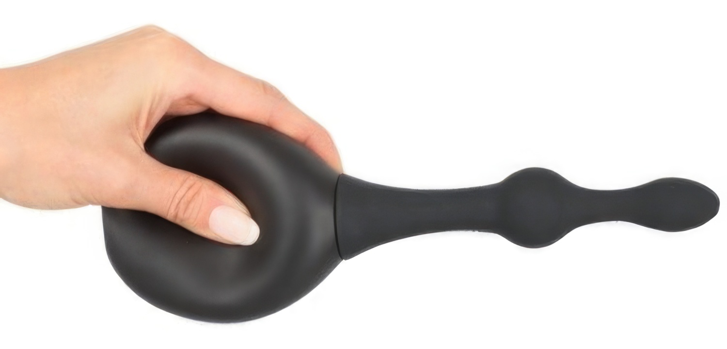 Наконечник анального душа выполнен из эластичного, упругого материала (силикон), поэтому может использоваться как стимулятор, анальная втулка. Она непосредственно переходит в емкость для накачивания воды, чтобы проделать гигиеническую процедуру.