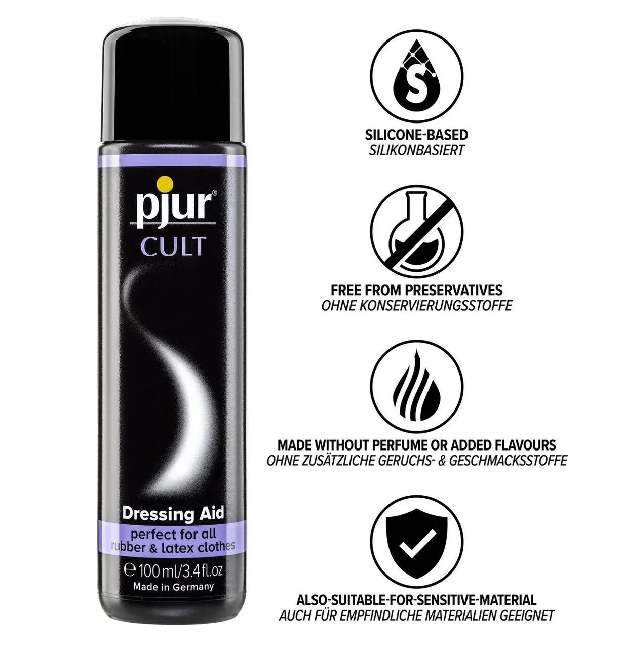 Кроме того, Pjur Cult обеспечивает защиту, поддерживает износостойкость материалов и помогает сохранить их эластичность.