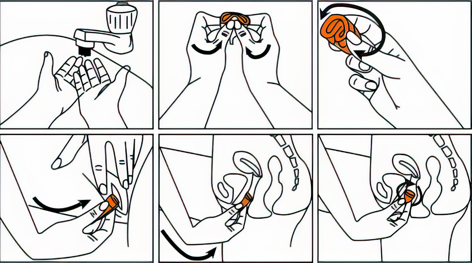 Чтобы правильно ввести менструальную чашу, ее необходимо сложить вдвое, сжав так, чтобы она стала практически плоской. После этого сложите ее еще раз и максимально сожмите - именно в таком виде менструальную чашу необходимо вставить во влагалище, после введения капа самостоятельно примет необходимое положение.