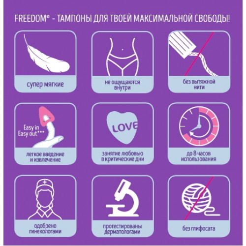 Заниматься любовью, спортом, плавать в бассейне, танцевать, встречаться с друзьями в СПА или отдыхать на пляже – с FREEDOM все это возможно даже в критические дни.