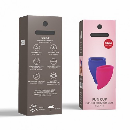 FUN CUP разработан специалистами в соответствии с Вашей анатомией, но нет ничего абсолютно универсального! Набор A+B позволяет попробовать как меньшую менструальную чашу A, так и большую менструальную чашу B, и посмотреть, какая из них подходит больше, а может Вам понравится пользоваться двумя размерами? Многие любят чередовать чаши в зависимости от дня месячных или насколько они чувствительны.