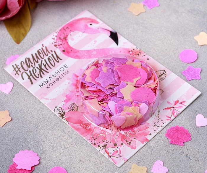 Мыльное конфетти — это оригинальный и очень приятный подарок для любителей водных процедур!