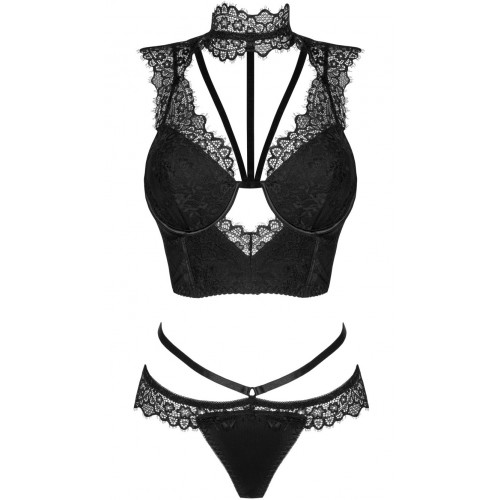 Сексуальный кружевной комплект со стрепами Obsidian L/XL