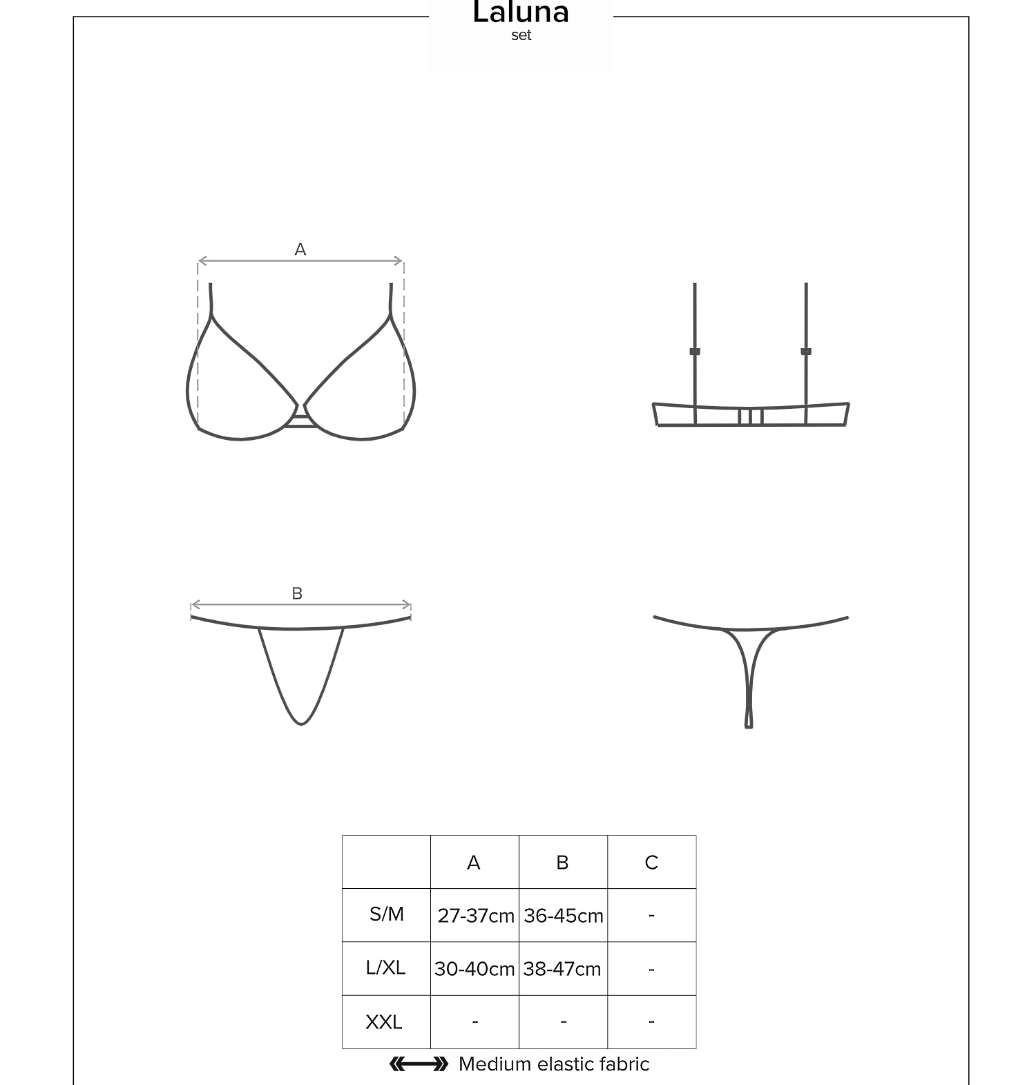 Комплект Laluna привлечет ваше внимание благодаря элегантному крою и кружеву, которое красиво подчеркнет ваши грудь и попу!