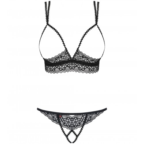 Комплект вызовет фантазии, о которых Вы никогда не мечтали. Открытый бюстгальтер и трусики раскроют все ваши достоинства и позволят любимому любоваться Вами во всей красе.