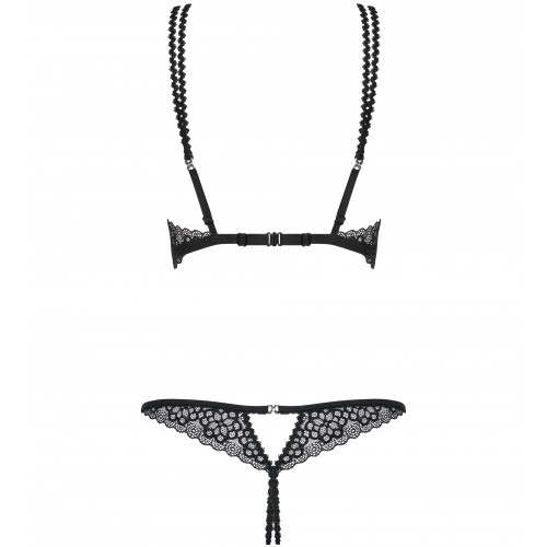 Детали: бретельки вокруг груди – бюст выглядит сексуально; регулируемые лямки и удобная застежка – быстрая и идеальная посадка; соблазнительные вырезы в стрингах; открытая промежность – оживите, о да; комплект выполнен из изумительного кружева; тонкие украшения с крошечными кристаллами – как красивые украшения.