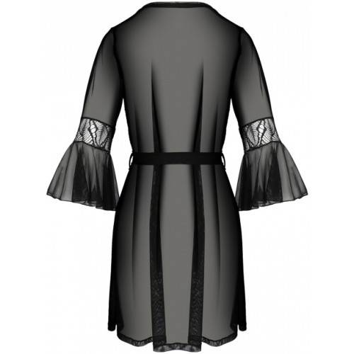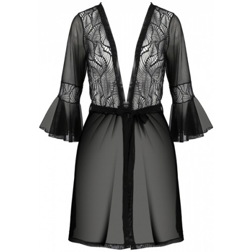 Полупрозрачный пеньюар из эко-коллекции Passion изготовлен из тонкого полотна чёрного цвета и декорирован вставками кружева.