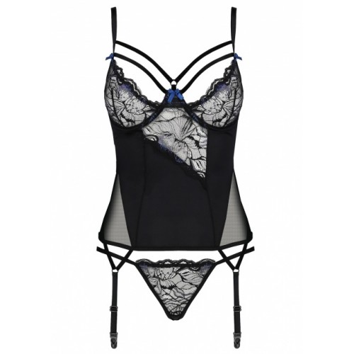 Состоит из двух идеально дополняющих друг друга элементов – соблазнительного корсета и игривых трусиков типа "стринги".