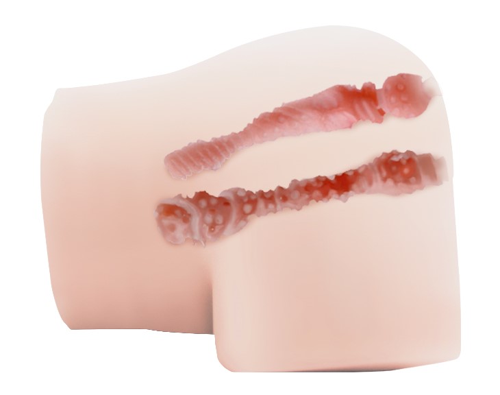Мастурбатор имеет целых два отверстия - анальное и вагинальное. Внутри отверстий вас ждет потрясающий рельеф в виде различных выпуклостей, шариков и гребешков, предназначенных для более интенсивной стимуляции члена во время использования.