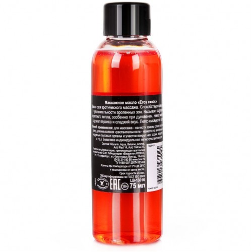 Нежные ласкающие прикосновения рук в сочетании с маслом Eros Tasty помогут расслабиться и ощутить успокаивающее тепло, особенно при дуновении. Использование масла во время массажа повысит чувствительность, обеспечит продолжительное скольжение.