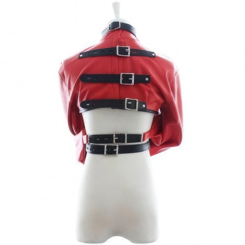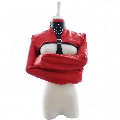 Смирительный жакет, основная часть которого выполнена из кожзаменителя, предназначен для надежной и удобной фиксации рук подчиняющегося партнера!