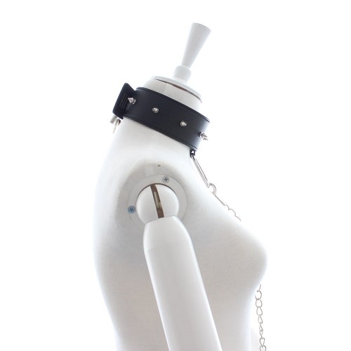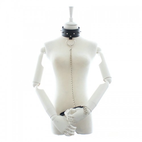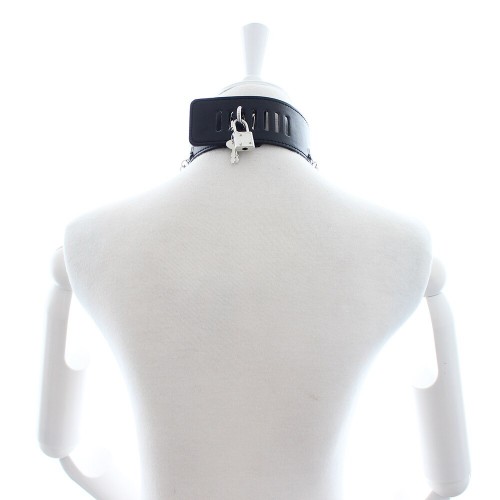 Застегивается ошейник на замочек, так что нижний не сможет вырваться из под Вашей власти.