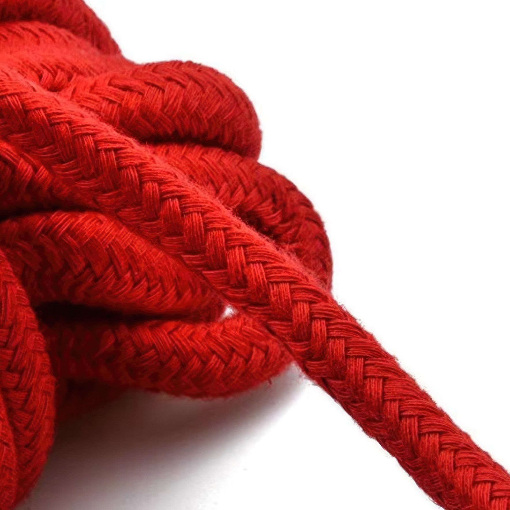 Безопасная и качественная веревка для связывания и бондажа из хлопка красного цвета.