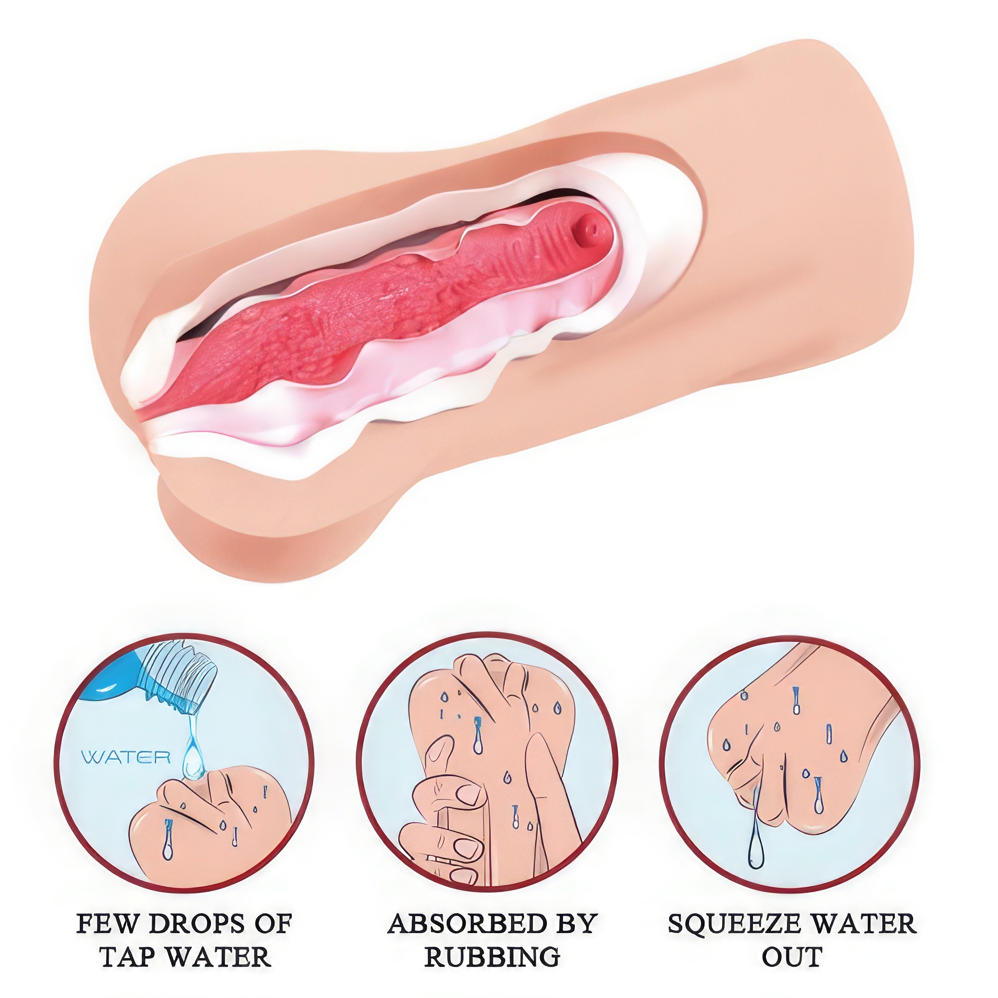 Особенность игрушки заключается в том, что при добавлении нескольких капель воды в тоннель мастурбатора, материал принимает консистенцию скользящей, увлажняющей смазки.