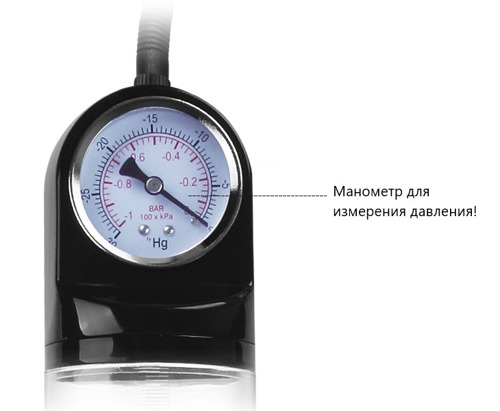 Прочная колба помпы изготовлена из прозрачного пластика и снабжена линейкой, чтобы оценивать достигнутый Вами результат в процессе увеличения члена.