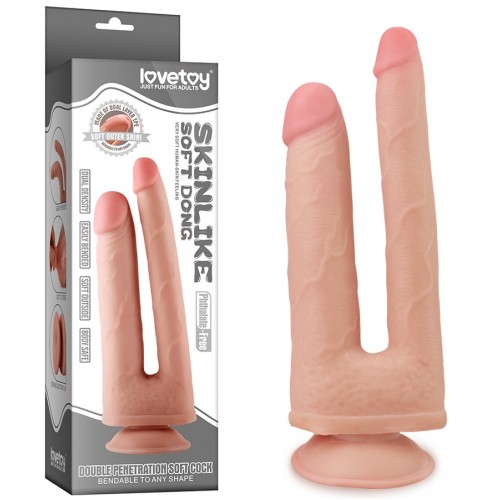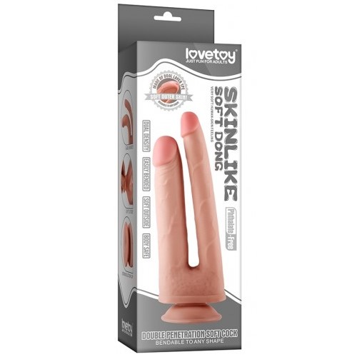 Двойной фаллоимитатор с присоской Skinlike Double Penetration Soft Cock 25 см