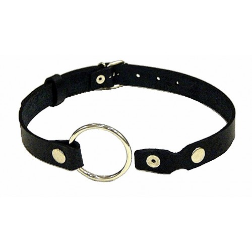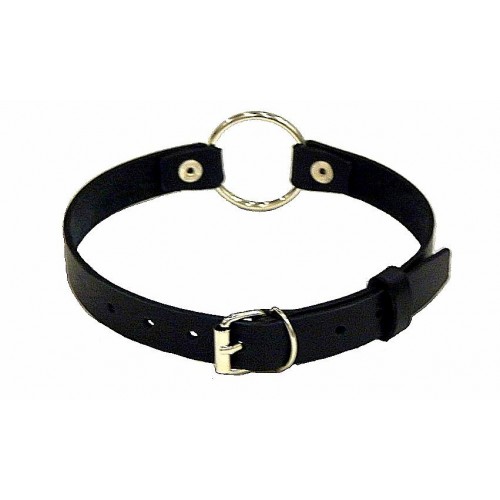 Кольцо держится на кожаных ремеш­ках, кото­рые крепятся на затылке, фик­си­руя кляп.
