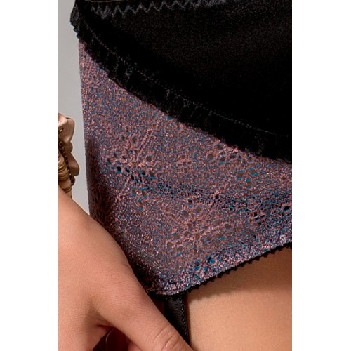Комплект дополняют не менее эротические детали – стринги и пояс для чулок которые придают смелость уверенной в себе женщины.