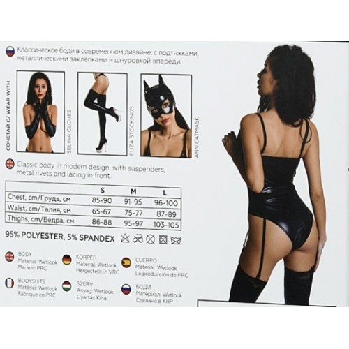 Сексуальное черное боди с пажами Glossy из материала Wetlook размер M