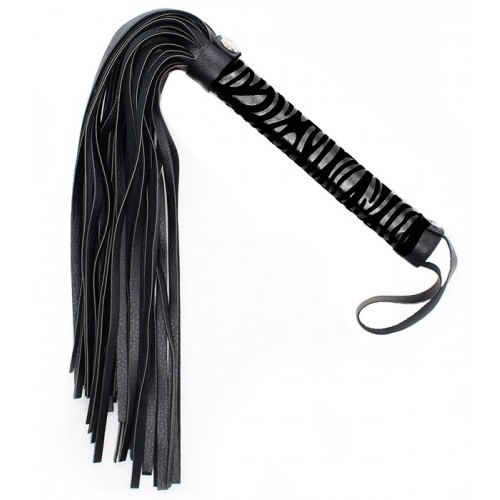 Компактная черная плеть с тигровым принтом на рукояти 39 см