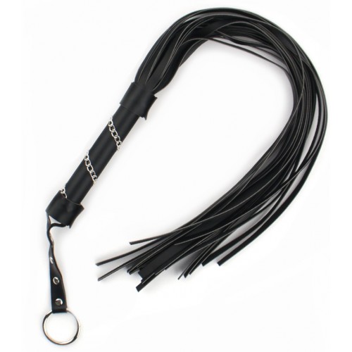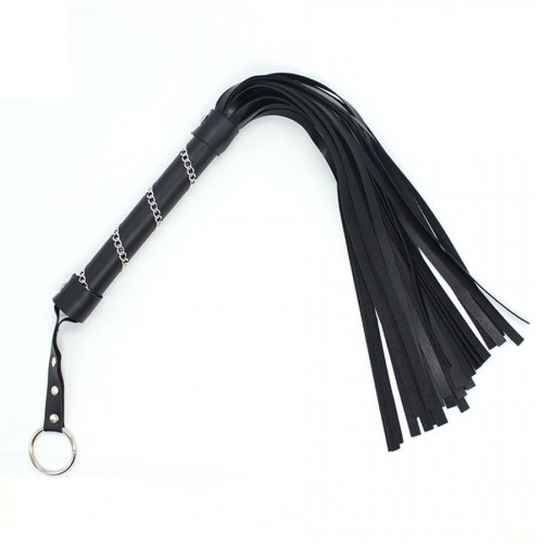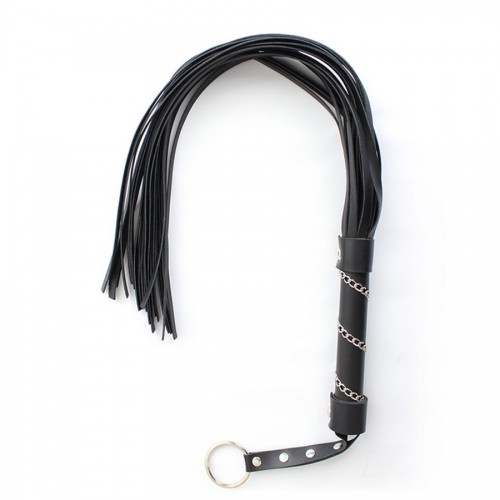 Плеть выполнена из черного качественного кожзама. Ручка по спирали украшена серебристой цепочкой , которая добавляет антуража.