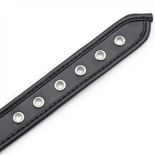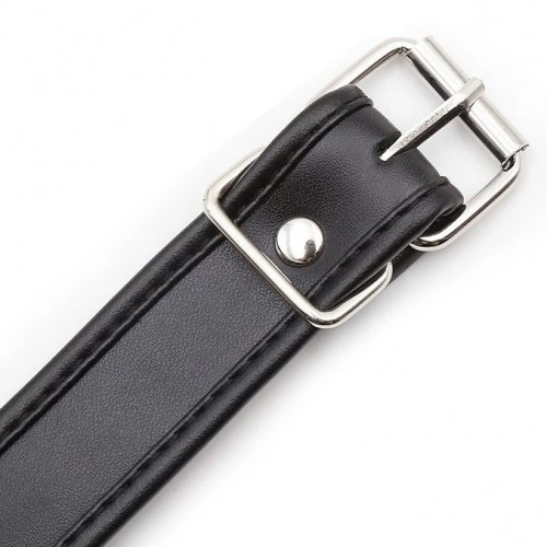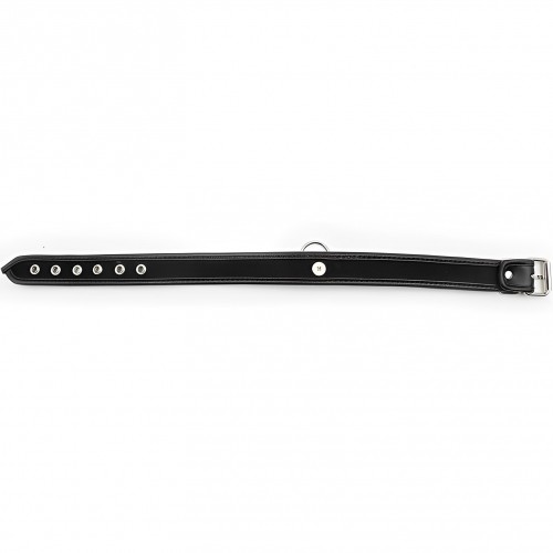 Ошейник выполнен из качественной искусственной кожи, он комфортно ощущается на шее, не врезаясь и не травмируя ее. Имеет универсальный размер, который регулируется ремешком с пряжкой.