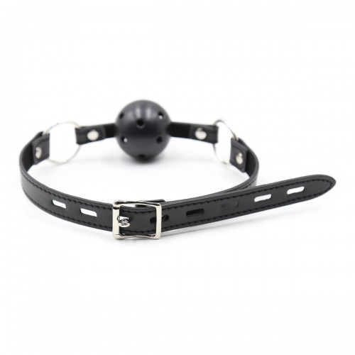 Кляп невозможно выплюнуть, он надежно фиксируется при помощи ремешка, который имеет уни­вер­саль­ный размер и удобно регу­ли­ру­ется пряжкой.