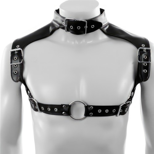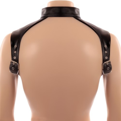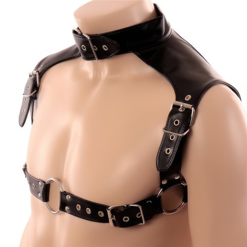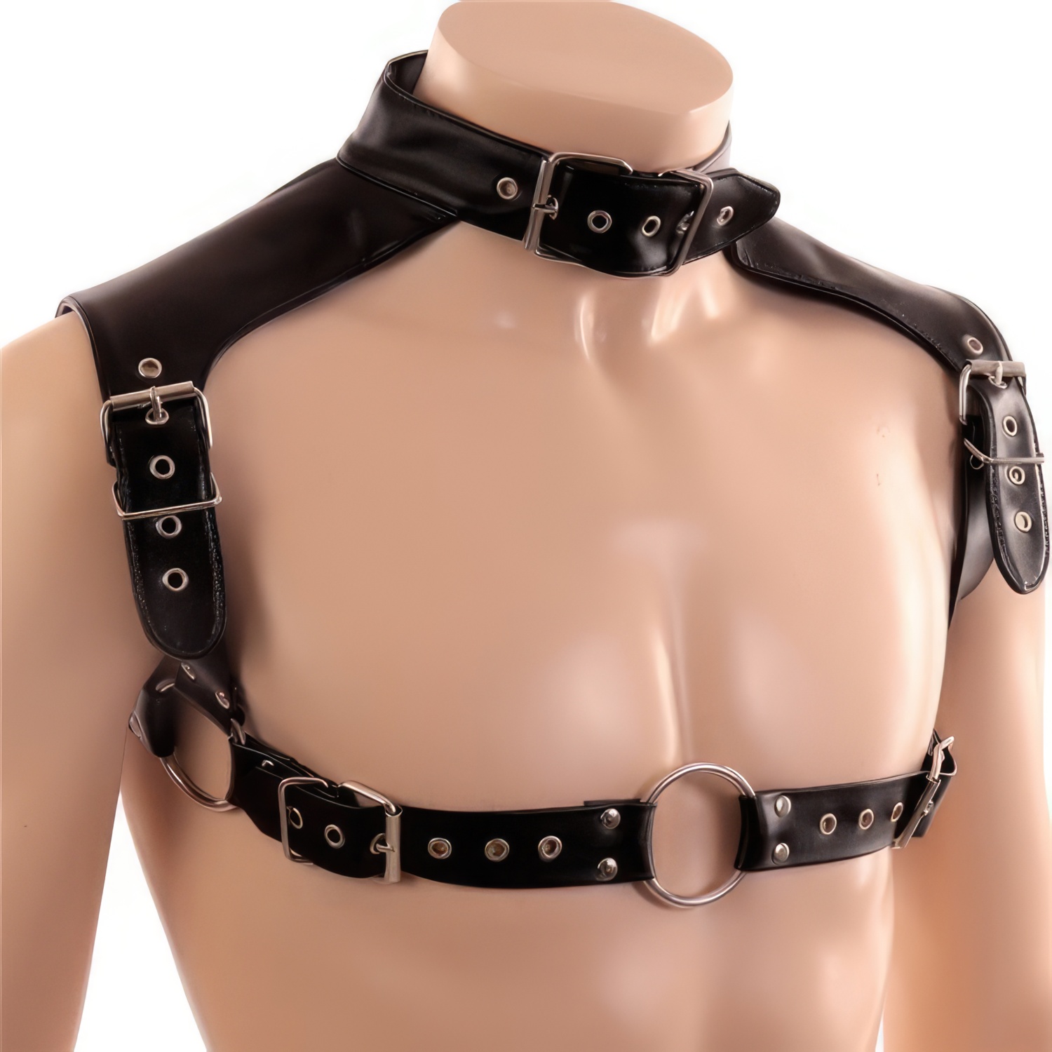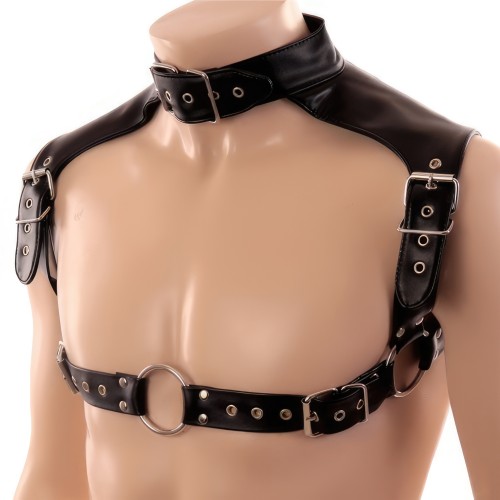 Черная мужская сбруя подчеркнет плечи и грудь мужчины сексуально обвивая тело.