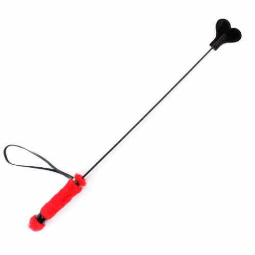 Стек с ручкой из красного меха перетянутой лаковыми кожаными пряжками отлично подойдет для игр в стиле БДСМ Light.