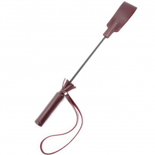 Рукоятка стека из натуральной кожи бордового цвета, на конце девайса расположен кожаный шлепок.